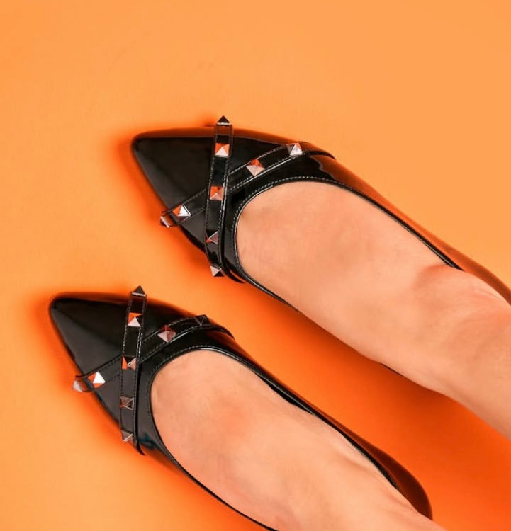 کفش تخت ورنی نگین دار مشکی زنانه دخترانه