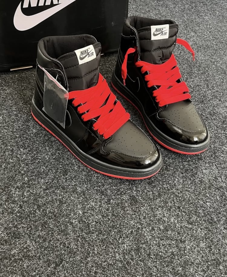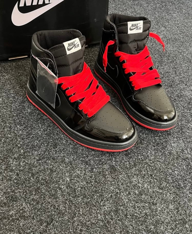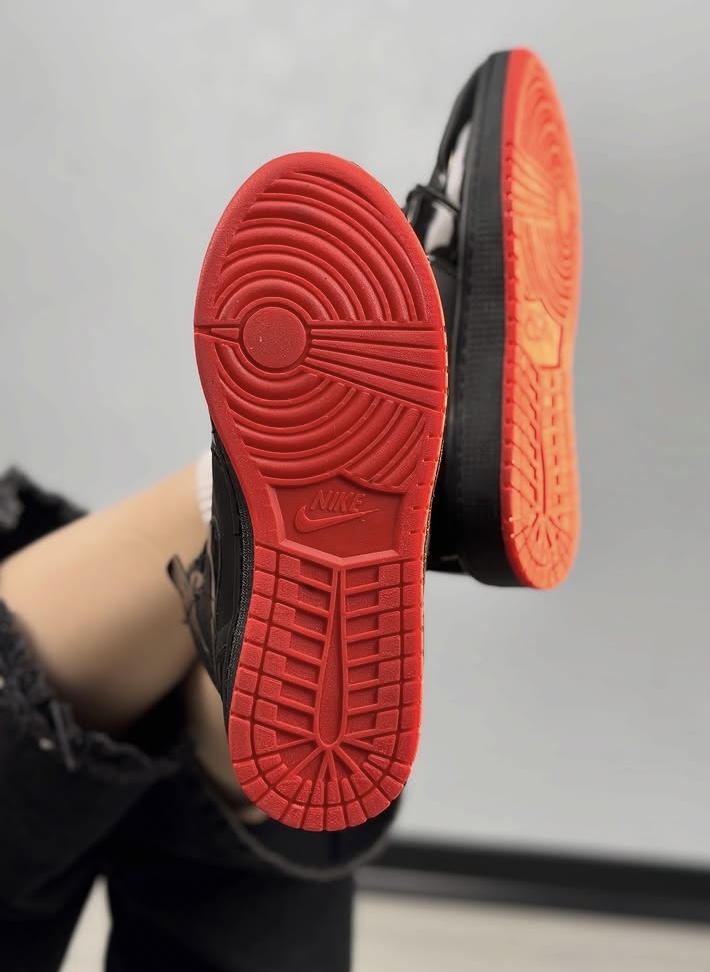 کتانی مردانه و زنانه کاپلی نایک جردن وان ساقدار Nike Jordan 1 مشکی زیره قرمز